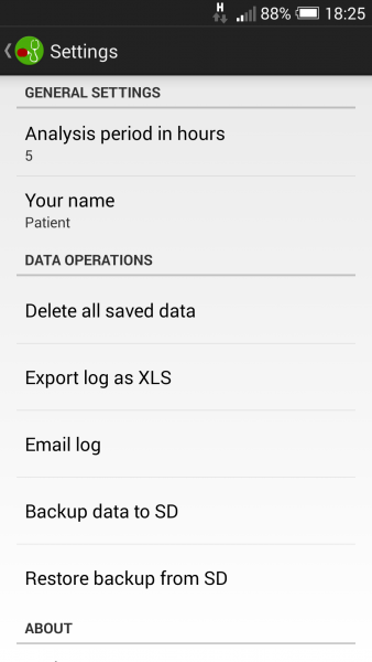 Based on these information, the app can make an analysis and show you which food you have eaten an editable amount of hours before the afflictions occurred.