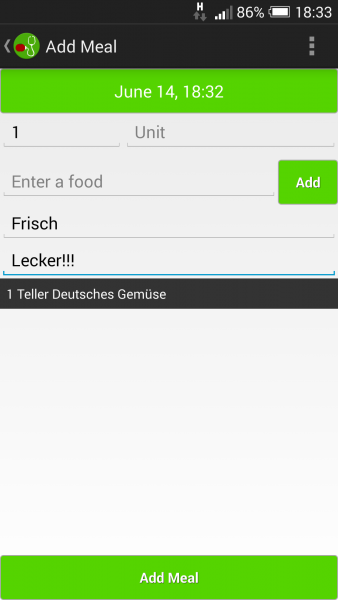 - You can delete entries in your log by opening the corresponding overview (Show meals, Show complaints) and tipping on the entry in the list. Then a confirmation dialog will show up. - How can I clear my log?